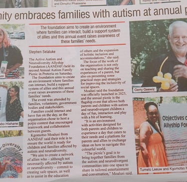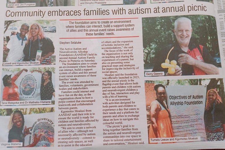 From featured segments on the #FEMINISTMOMMY YouTube Series and Rekord East to deep dives on the Channel Africa platform, our foundation has consistently utilized major media platforms to shift the narrative from mere awareness to true autistic acceptance. This journey is sustained by our incredible "ShowUpCrew"—the unwavering friends who have become family—and is visually brought to life through our merchandise and mascots, Lumi and Ida, who champion the inherent value of neurodiversity across every social and leisure space we touch.